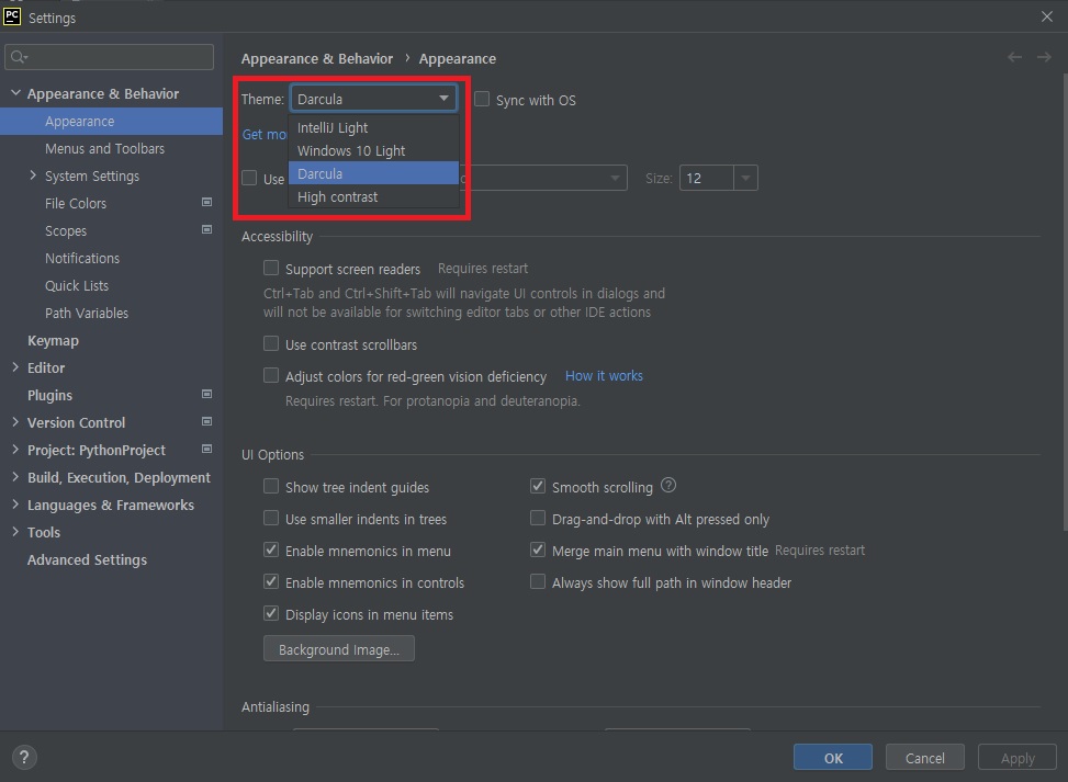 1. PyCharm 환경 테마 변경하기